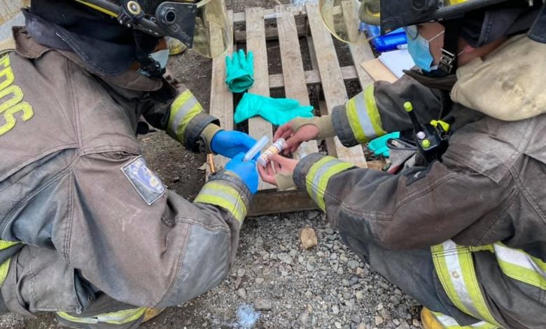 La espuma está siendo analizada por operadores Hazmat de la Cuarta Compañía de Bomberos de La Calera para determinar si contiene agentes dañinos para el ser humano