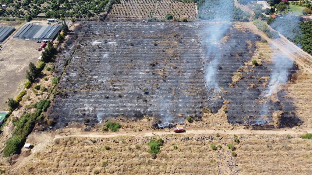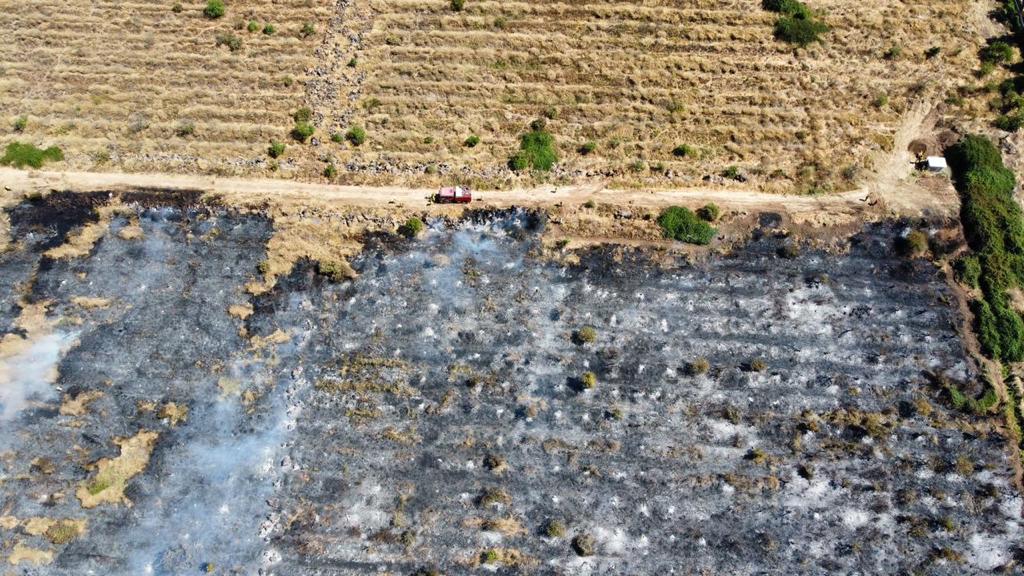 Con la ayuda de un drone, se captaron algunas imágenes que dan cuenta de cómo quedó el terreno quemado en ese sector rural de la comuna crucina.
