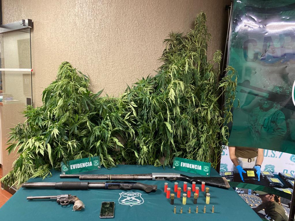 El operativo se realizó cerca de las 15 horas  y tuvo como resultado, la detenciíon a un individuo por el delito de Cultivo ilegal de Cannabis y Ley de control de Armas.