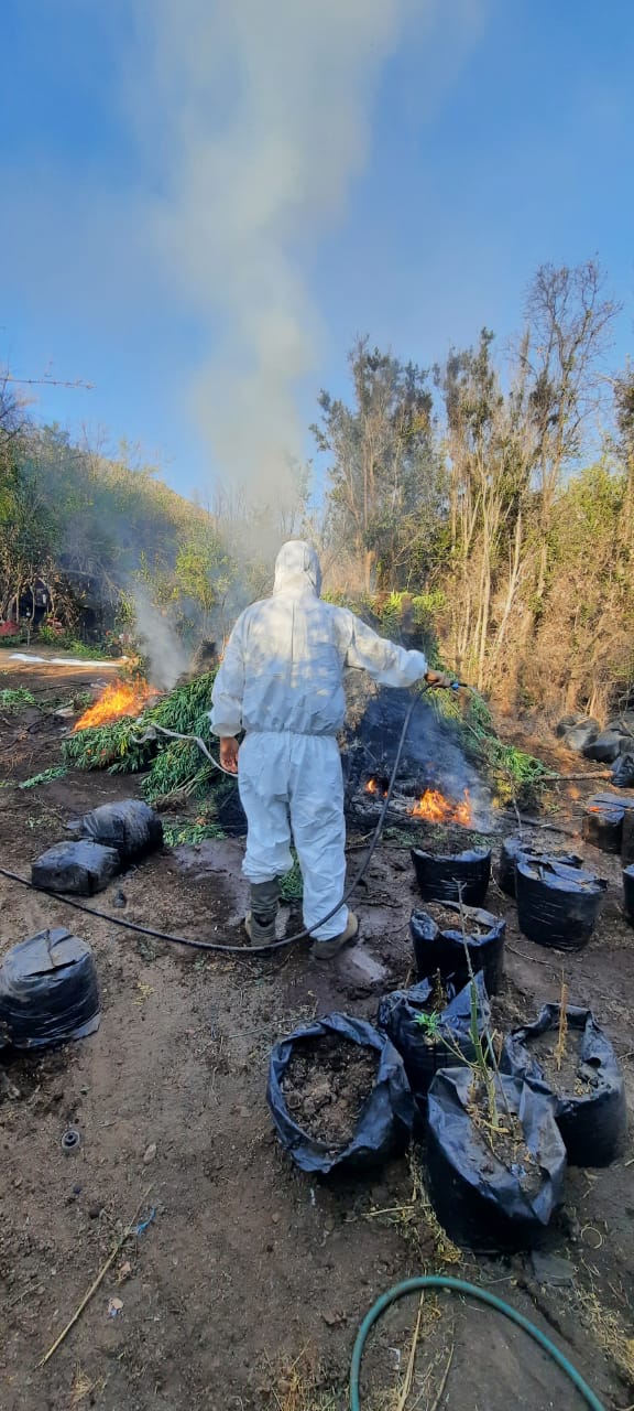 El trabajo investigativo de Carabineros de la Sección OS7 Valparaíso permitió incautar cerca de 23 mil millones de pesos en plantas de Cannabis, el equivalente a 7.132 unidades que eran cultivadas en sitios de la quebrada El Bellotal en el sector de Colliguay. Además, en el lugar se encontró una pistola a fogueo, 10 cartuchos y un cargador.