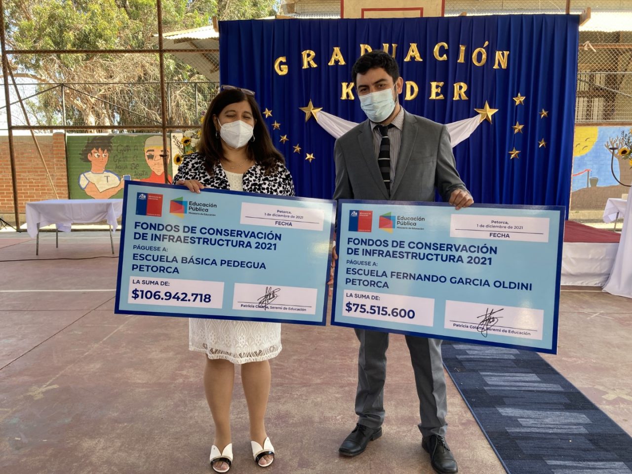 En una ceremonia encabezada por la autoridad regional de Educación junto al alcalde de la comuna, Ignacio Villalobos y en compañía de las comunidades educativas beneficiadas por estos fondos, se realizó la entrega simbólica de los más de $180 millones adjudicados a la Escuela Pedegua y Escuela Fernando Garcia Oldini.