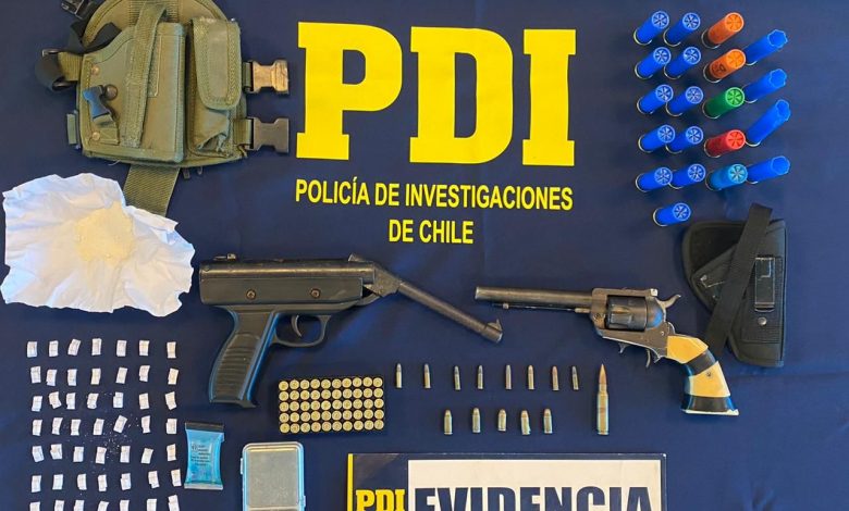 En este contexto, se gestionaron órdenes de entrada y registro, concretando la detención del imputado por el delito flagrante de Tenencia o Porte de Armas de Fuego, Municiones y Otros e Infracción a la Ley 20.000, incautando al interior de su domicilio dos armas de fuego, munición de diferentes calibre y droga del tipo cocaína base, por lo que fue puesto a disposición del Juzgado de Garantía de Valparaíso para efectuar su formalización.