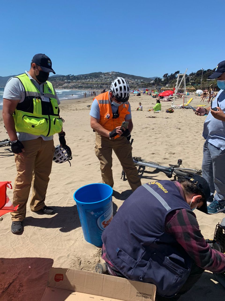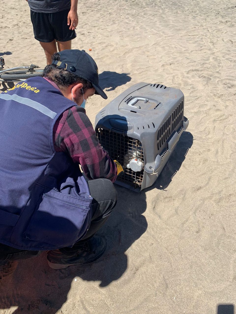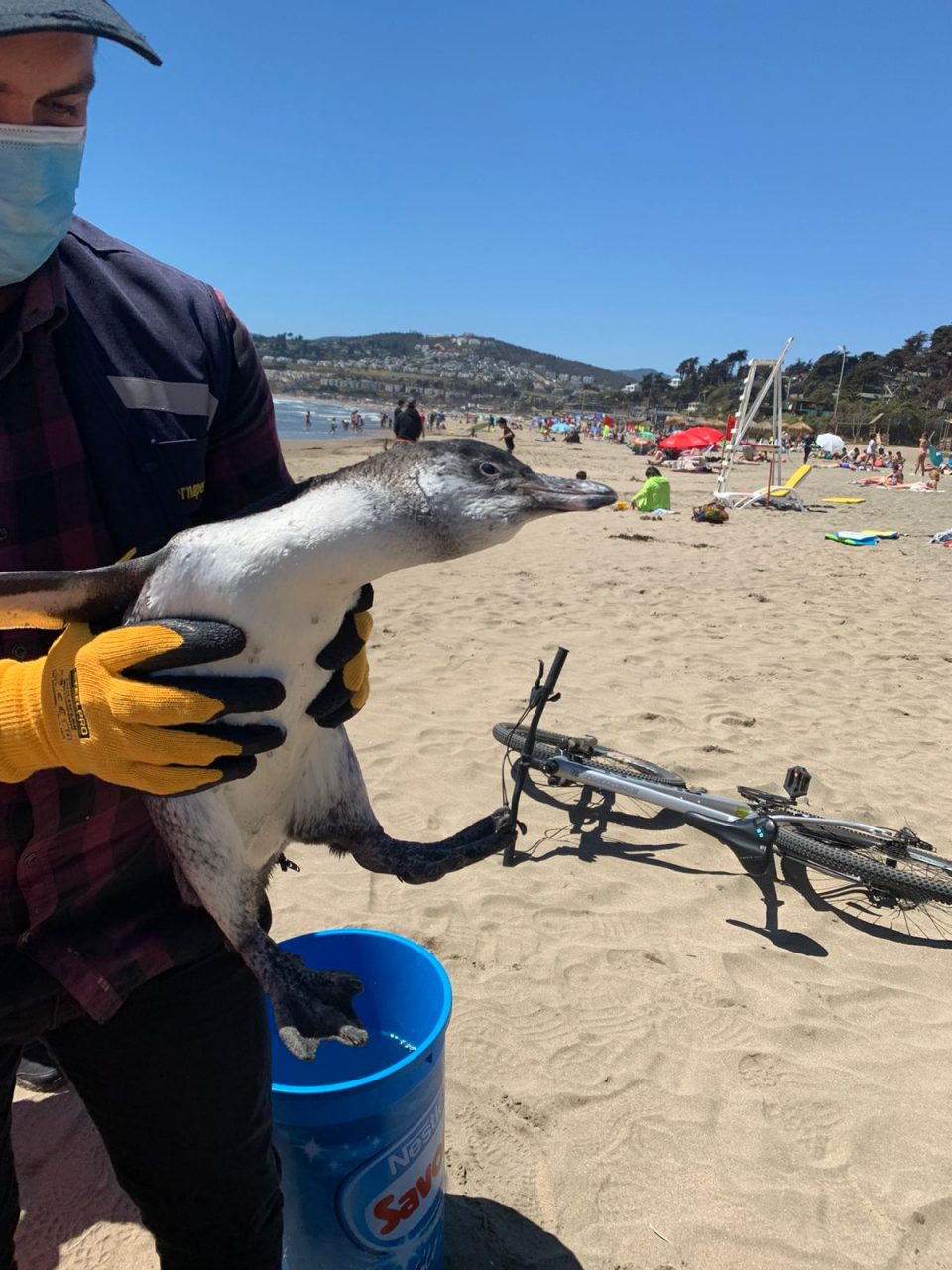 Pingüino que apareció en playa de Maitencillo fue rescatado por personal de Sernapesca con apoyo de personal de la Municipalidad de Puchuncavi.