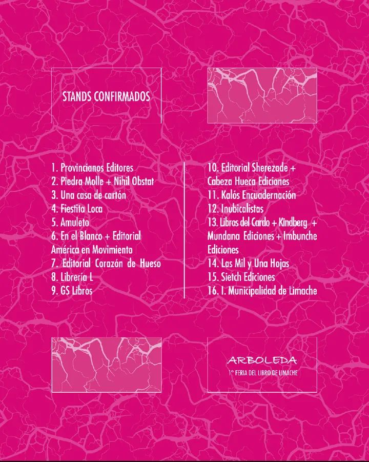 Según detalla la publicación de la pagina del evento, “Arboleda se realizará este sábado 5 y domingo 6 de febrero, de 10 a 20 horas, en el Parque Brasil y con entrada totalmente liberada”, sobre cuando se hará. En el evento habrá 16 stands, en el que “participarán librerías, editoriales, escritores/as y numerosos artistas de nuestra ciudad y ciudades cercanas”.