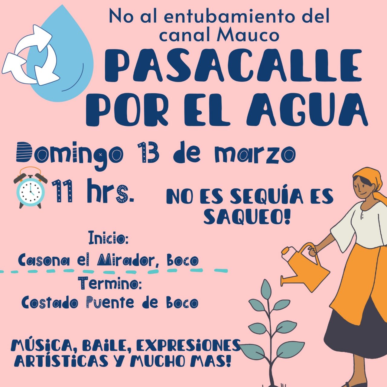 (Caminaremos desde la histórica casona san José o el mirador donde se iniciará con una ceremonia a las 10 am hasta el puente de Boco donde habrá un punto artístico)”.
