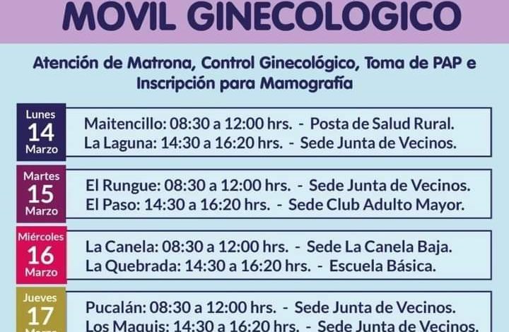 Enmarcado en el Mes de la Mujer y gracias al trabajo del Departamento de Salud Municipal, el municipio logró gestionar la visita de una Clínica Móvil Ginecológica, la cual recorrerá durante todo este mes diferentes sectores de la comuna de Puchuncaví, prestando servicios tales como atención de matrona, control ginecológico, toma de PAP e inscripción para mamografía.