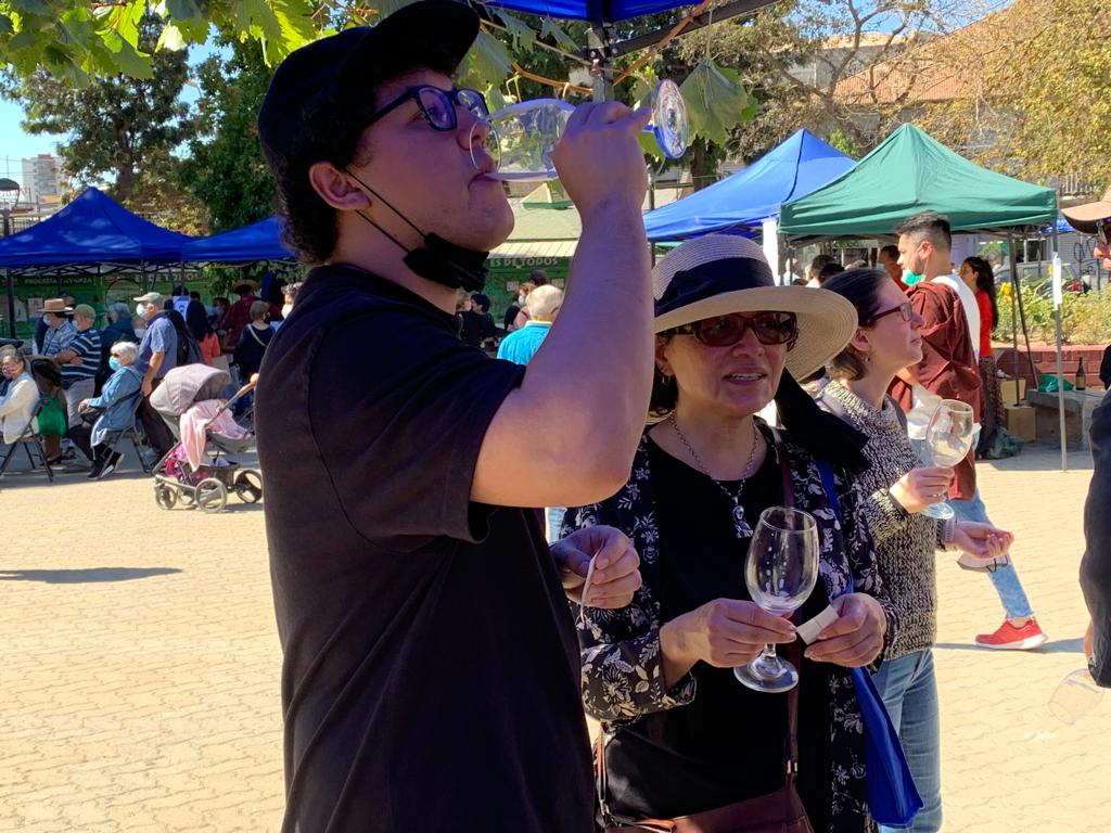 “Desde muy temprano la comunidad apoyando, estando aquí ofreciendo ayuda desde el inicio. Los viñateros llegaron con mucha calma, se instalaron con sus vinos, luego la gente de comida y ahora ya se siente que la comunidad ha ido entendiendo que vamos recuperando, vamos dándole vuelta a esta rueda después de dos años sin reunirnos. La fiesta convoca a artistas locales, promete de alguna manera una participación desde la colaboración. Se nota mucha alegría, la gente va fluyendo respetuosamente por los espacios, todos con su mascarilla.”