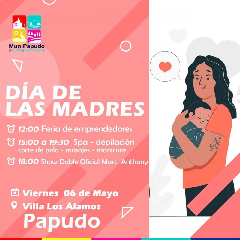 Ya está todo preparado para recibir a las madres de Papudo y Pullally para celebrar su día durante este fin de semana. El municipio de Papudo, brindará un espacio de esparcimiento y entretención para la comunidad y así, las madres puedan disfrutar de una serie de actividades que les permitan disfrutar de un día de lindas sorpresas.
