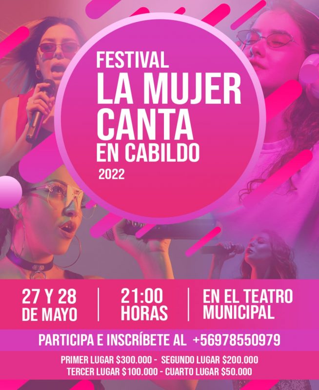 Todas las interesadas tienen hasta este próximo lunes, 09 de mayo, para inscribirse directamente al fono WhatsApp +56978550979, y en el sitio web www.municipiocabildo.cl están disponibles las bases del festival para que puedan conocer todos los detalles.
