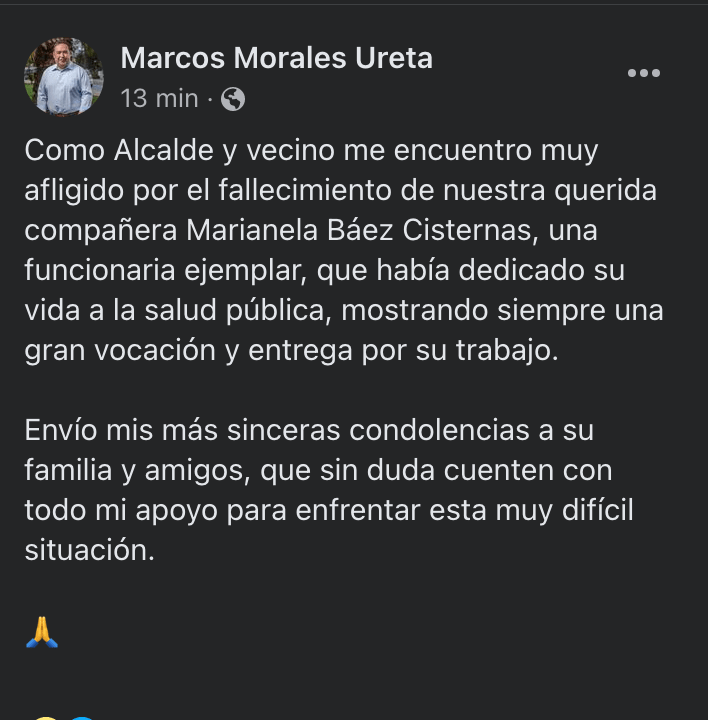 Muchos han sido los mensajes de condolencias a la familia en redes sociales, incluso el del alcalde de Puchuncaví marcos Morales, quien lamentó lo ocurrido.