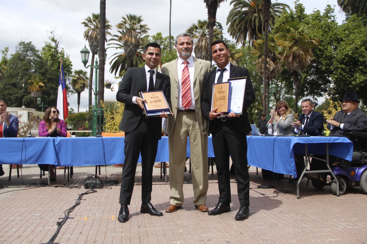 Finalmente, propuestos por el alcalde Óscar Calderón Sánchez, fueron nombrados ciudadanos distinguidos los hermanos Hugo y César Villegas Mena, quienes dirigen actualmente Grupo V, holding de empresas que agrupa a Transportes CVU, Inmobiliaria Patriarca, Constructora La Fe, Hospital Clínico Veterinario Quillota, Restaurante Encantos del Inca, Centro de Eventos Sport Club-Q y Club de Deportes Limache. Protagonistas de una historia de esfuerzo, iniciada por su padre César Villegas Urrutia, son activos colaboradores en las actividades solidarias y proyectos de la ciudad y el país, destacando su reciente donación de 150 millones de pesos a la Teletón 2022. Hugo Villegas comentó que “es un orgullo por nuestra parte y también una invitación a seguir progresando por nuestra comuna, a trabajar en conjunto y creer que todo esto se puede”. En tanto que su hermano César expresó que “es un reconocimiento que no esperábamos, siempre trabajando en silencio y la parte social va en el corazón de nosotros. Tenemos una familia súper humilde, del sector El Bajío, que siempre resaltamos y lo que ratificamos, la alianza público-privada, porque va en beneficio de la comuna y de los ciudadanos”.
