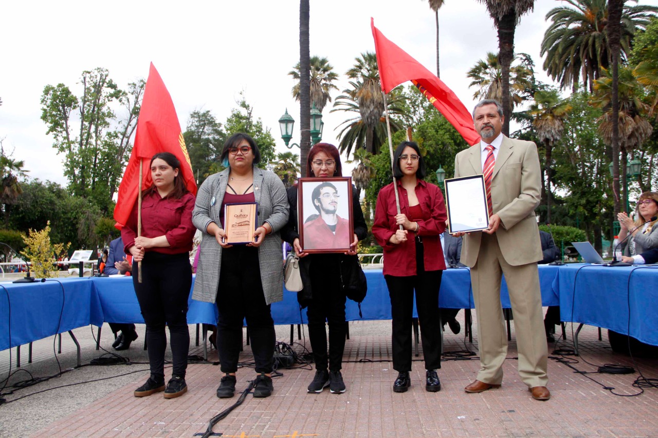 Diego Guzmán Farías fue un destacado estudiante, músico y activista político quillotano. Interpretó el clarinete en orquestas municipales de Limache y Quillota. Desde su militancia en las Juventudes Comunistas apoyó diversas causas de voluntariado y cultura, especialmente en San Pedro, el Cerro Mayaca y el sector El Peumo. Trabajó con la Brigada Muralista “Ramona Parra” y organizó los Festivales de Todas las Artes “Víctor Jara”. Su comprometida vida fue trágicamente interrumpida en 2015, cuando fue asesinado por un particular mientras participaba en una Marcha por la Educación en Valparaíso. Propuesto por la concejala Daniela Meriño, fue su madre Alicia Farías quien recibió la distinción póstuma y comentó emocionada que “estos reconocimientos los agradezco mucho, porque quiere decir que no se han olvidado de mi hijo. Porque mi hijo fue un niño que apoyó mucho a toda la comunidad, hizo muchas obras sociales. Los domingos eran dedicados a la gente que no tenía, él los ayudaba con pala, chuzo y era muy generoso. Y eso también me lo enseñó él, que tenía que ser generosa”.