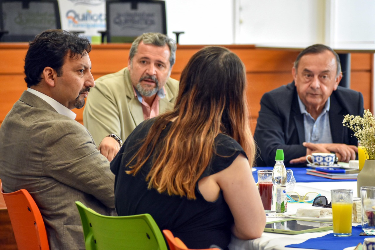 La jornada del viernes fue más intensa y comenzó con un desayuno con el alcalde Óscar Calderón Sánchez y el consejero regional por Quillota, Cristian Mella Andaúr. El jefe comunal les presentó su plan de trabajo y la impronta de despliegue territorial que definió para su gestión, además de describir algunos de los proyectos emblemáticos de innovación social que la ciudad ha impulsado los últimos 30 años. Además, las autoridades intercambiaron regalos. Los cores le entregaron una copia de la Estrategia Regional de Desarrollo de Los Lagos 2030 y el alcalde les regaló el primer tomo de la “Historia General de Quillota”, de Roberto Silva Bijit.