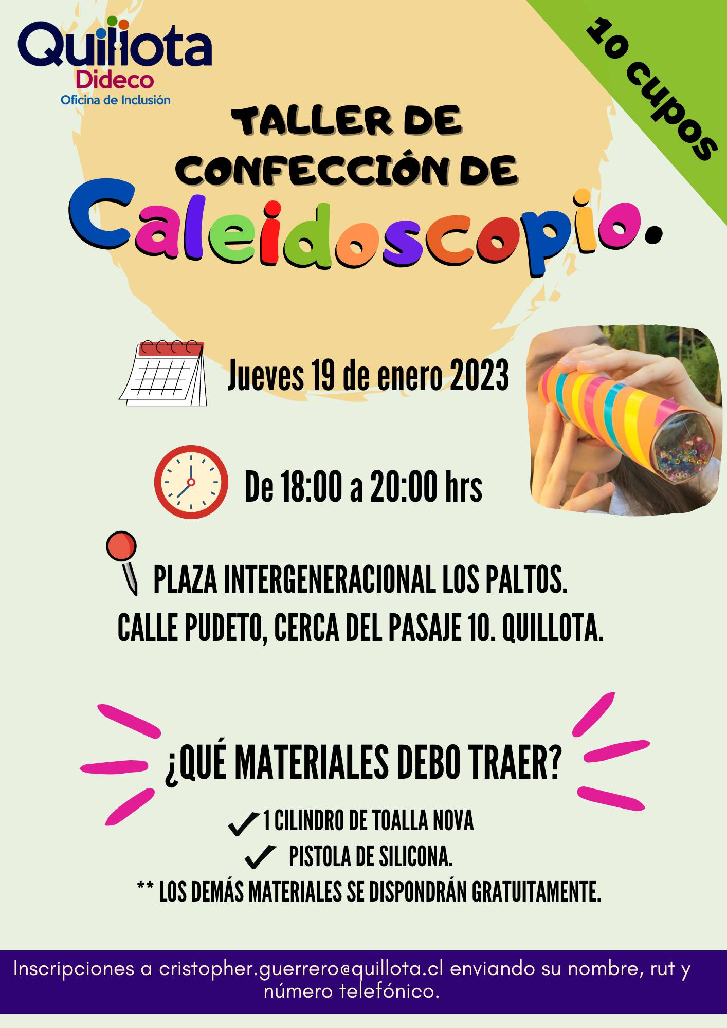Una entretenida parrilla de actividades estivales dirigida a niños y jóvenes en situación de discapacidad ofrecerá la Municipalidad de Quillota, a través de la Oficina de Inclusión dependiente de la Dirección de Desarrollo Comunitario (DIDECO). Verano Inclusivo “Redescubriendo nuestras capacidades” del 19 hasta el 27 enero impartirá un curso de creación de caleidoscopios, además de seminarios centrados en cómo navegar la sexualidad de los jóvenes con discapacidad y enfocado en cuidadores responsables de estas personas.