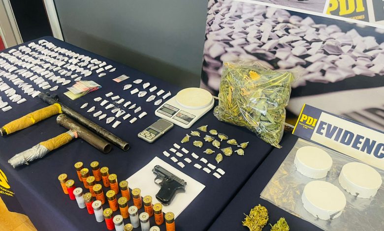 En la ocasión, los oficiales de la PDI lograron la incautación de cinco plantas de cannabis sativa, 212 gramos de la misma droga, 219 gramos de cocaína base, 1.057 de clorhidrato de cocaína y 1,92 gramos de ketamina, todo avaluado en más de 14 millones de pesos.