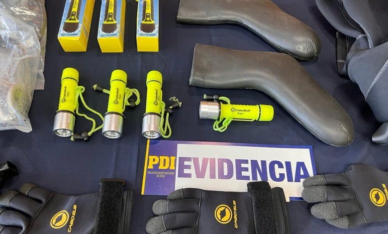 De esta manera, fueron incautados trajes de buceo, reguladores, bolsos, linternas y guantes, todo avaluado en más de 5 millones de pesos.