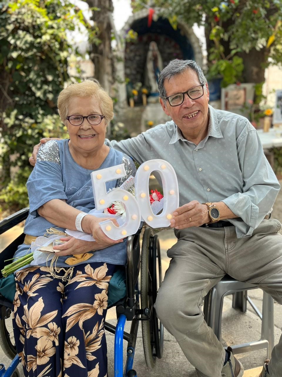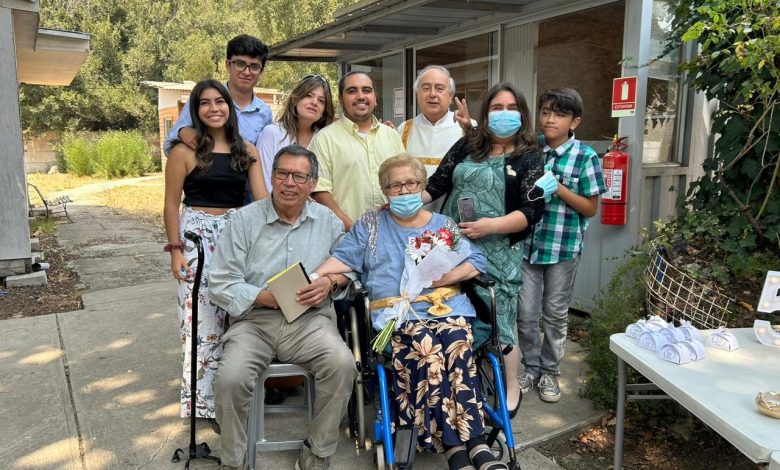 Un momento de mucho significado afectivo vivieron los pacientes y comunidad funcionaria del Hospital Geriátrico La Paz de la Tarde de Limache, quienes presenciaron la celebración del aniversario de los 50 años de matrimonio de una de sus pacientes, Sonia Aliaga Aguirre con su esposo, Julio Godoy Suarez, junto a su entorno familiar, que fue celebrado por el diácono, Jaime Ocaranza.