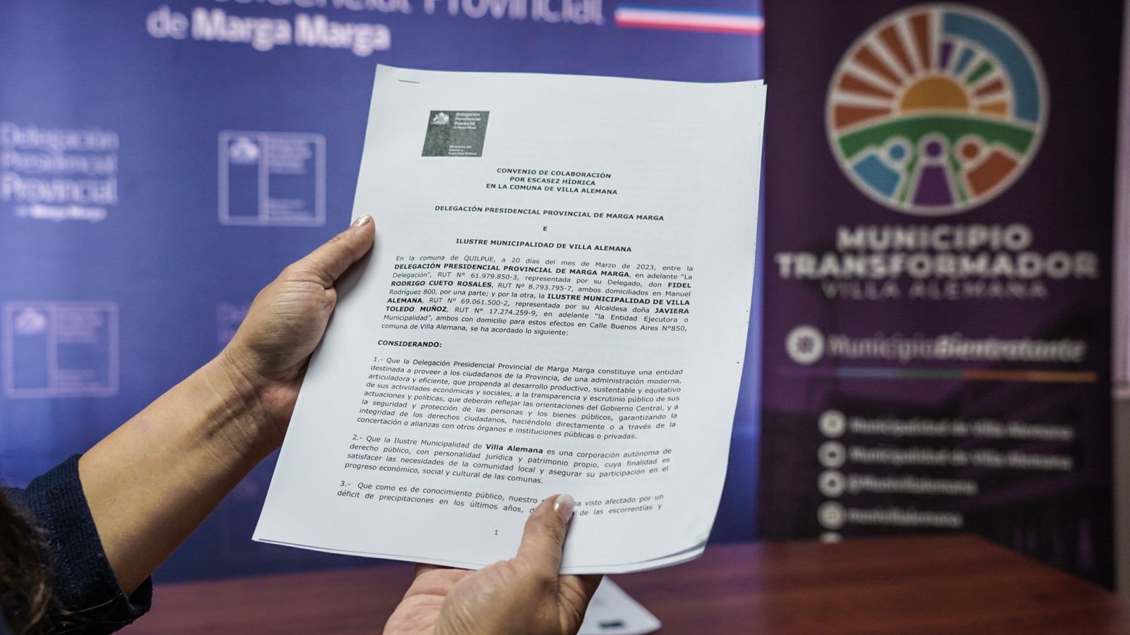 Como una manera de garantizar el acceso y entrega de agua potable a vecinos y vecinas de Villa Alemana, el Municipio Transformador y la Delegación Presidencial Provincial de Marga Marga celebraron un inédito convenio que tiene por objetivo seguir implementando medidas concretas para apalear la escasez hídrica presente en la comuna.