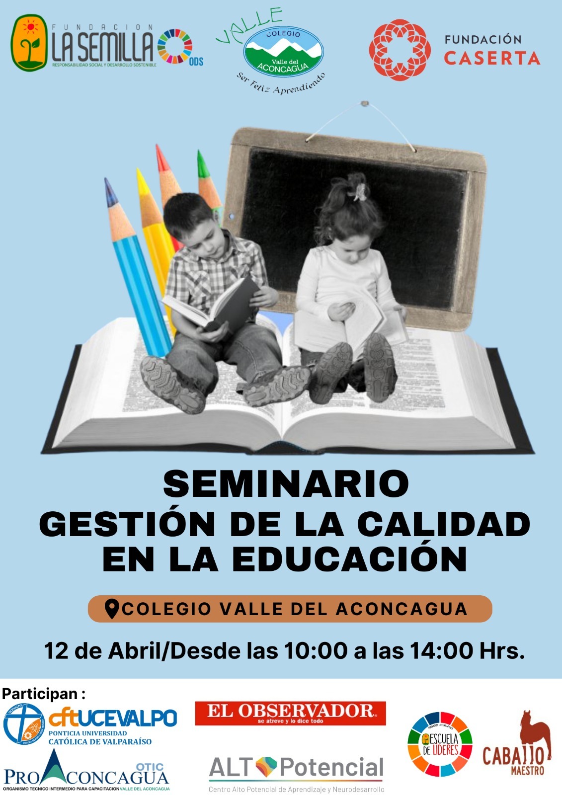 Se trata del seminario “Gestión de la Calidad en la Educación”, organizada por el establecimiento educativo en conjunto con Fundación La Semilla y Fundación Caserta, oportunidad en la cual se realizarán charlas de apoyo educativo, la presentación de modelos de estimulación y charla de potenciación de talentos.