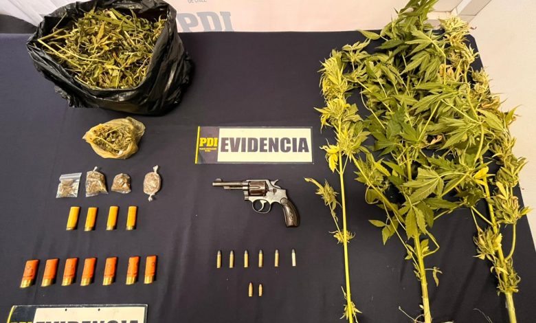 En el procedimiento los oficiales incautaron 175 gramos de cannabis en proceso de secado, plantas de cannabis, un revólver .38, y cartuchos de distinto calibre.