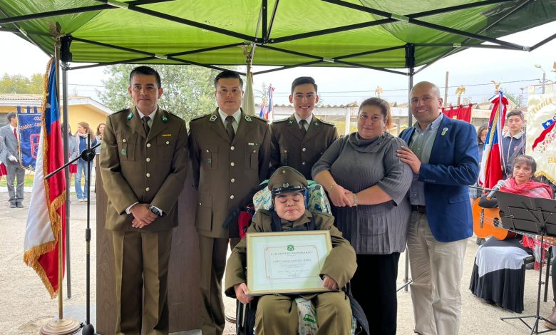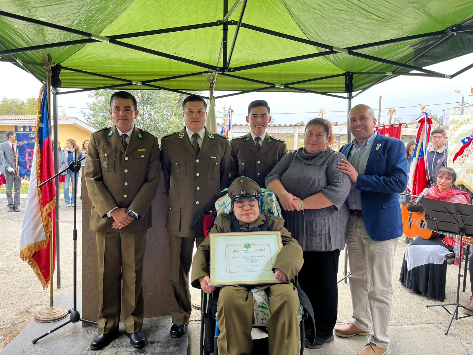 Una emotiva ceremonia tuvo Andrés González, un niño de trece años que padece Síndrome de Hunter, quien fue nombrado Carabinero Honorario el día 27 de abril, en la Tenencia de Olmué.