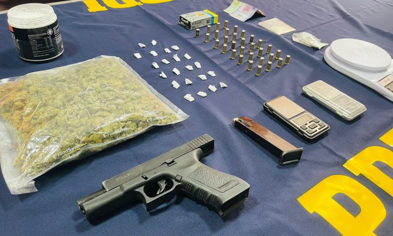 Según información aportada por la PDI, el trabajo de análisis criminal e inteligencia policial efectuado por los oficiales permitió establecer que la imputada se dedicaba a la venta de sustancias ilícitas en su domicilio, incautando en el operativo antidrogas 335,9 gramos de Cannabis Sativa, 22,2 gramos de Clorhidrato de Cocaína, 3,1 gramos de Cocaína Base, un arma modificada con cargador, 35 cartuchos balísticos modificados, tres balanzas digitales, precursores y dinero en efectivo
