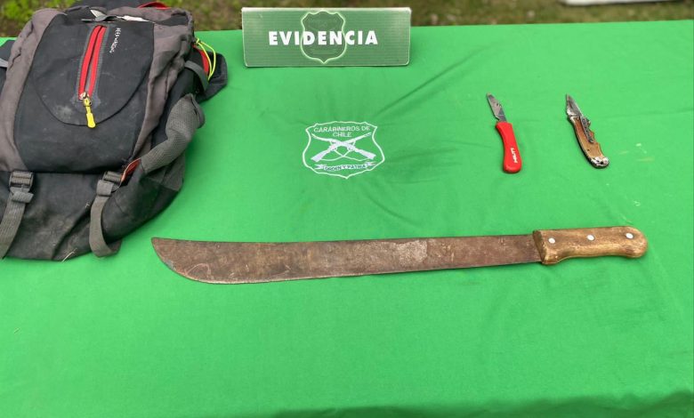 Carabineros de la 1ª Comisaría Viña del Mar detuvieron a un sujeto que agredió a otro con un machete. Tras la revisión de su mochila se le incautaron tres armas blancas, una de ellas la que habría usado para herir a la víctima afuera del Juzgado de Familia en la ciudad Jardín.