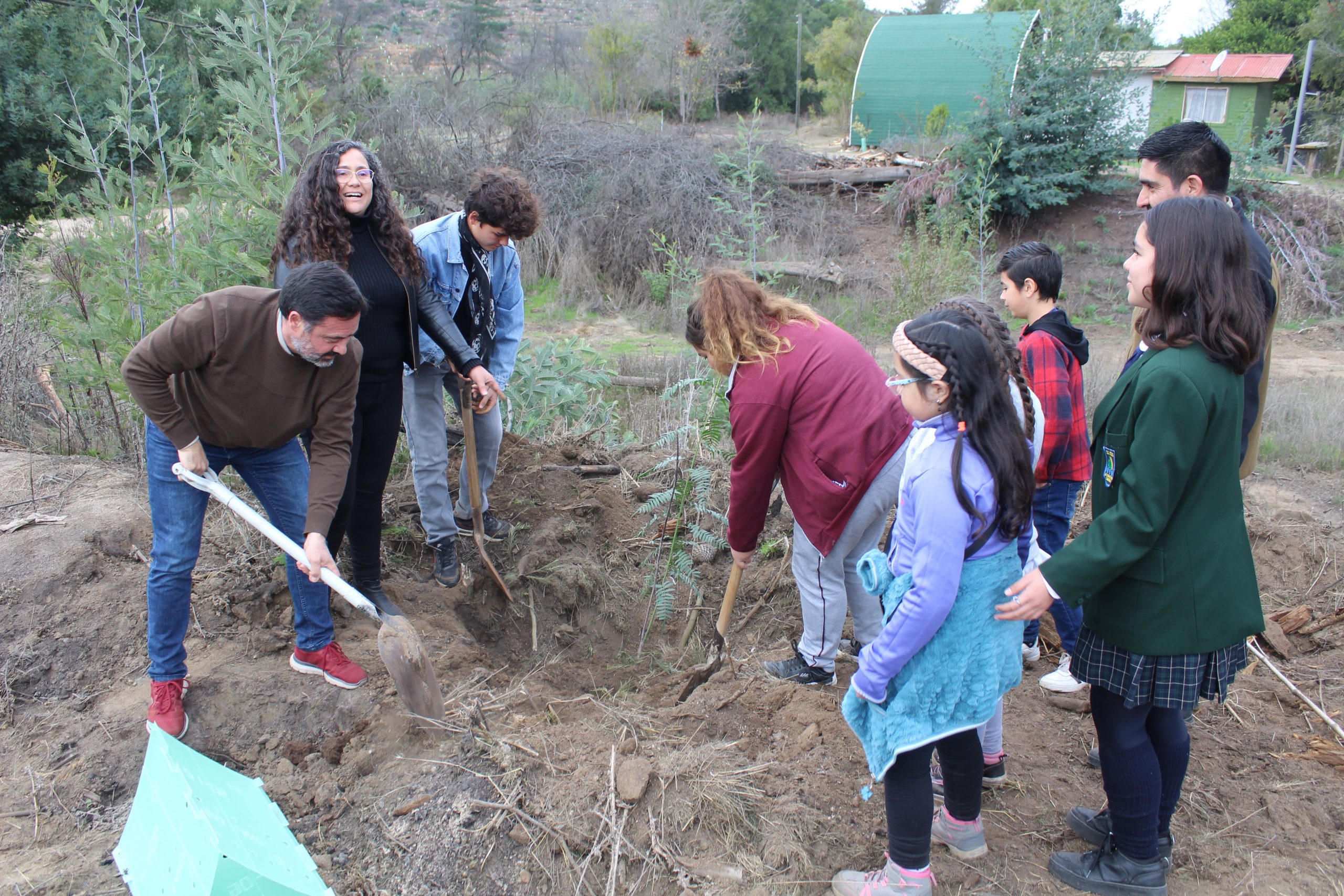 Finalmente, con gran entusiasmo y pala en mano, las personas presentes plantaron árboles característicos del bosque nativo esclerófilo, como pimiento, pelú y peumo, en las inmediaciones del puesto  de control de ingreso al recinto.