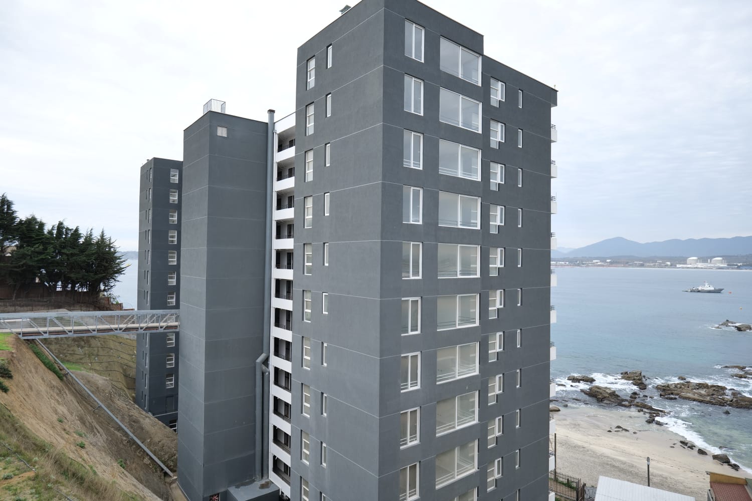 También se destacan los pavimentos peatonales, vegetación adecuada para el clima de la zona, clima accesible por el borde costero, paso sintético, bancas, portería, accesos controlados y vista al mar, ejecutado por la Inmobiliaria Tasco.