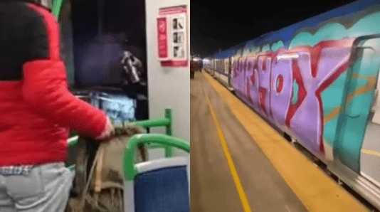 Viña del Mar: Pasajeros molestos encararon a grafiteros que rayaron el metro en estación Miramar