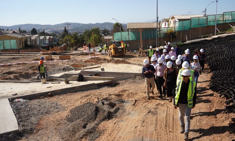 Dirigentes del sector acompañaron a la alcaldesa de Villa Alemana, Javiera Toledo, y al gobernador regional de Valparaíso, Rodrigo Mundaca, a una visita a las obras para ver el avance de la construcción.