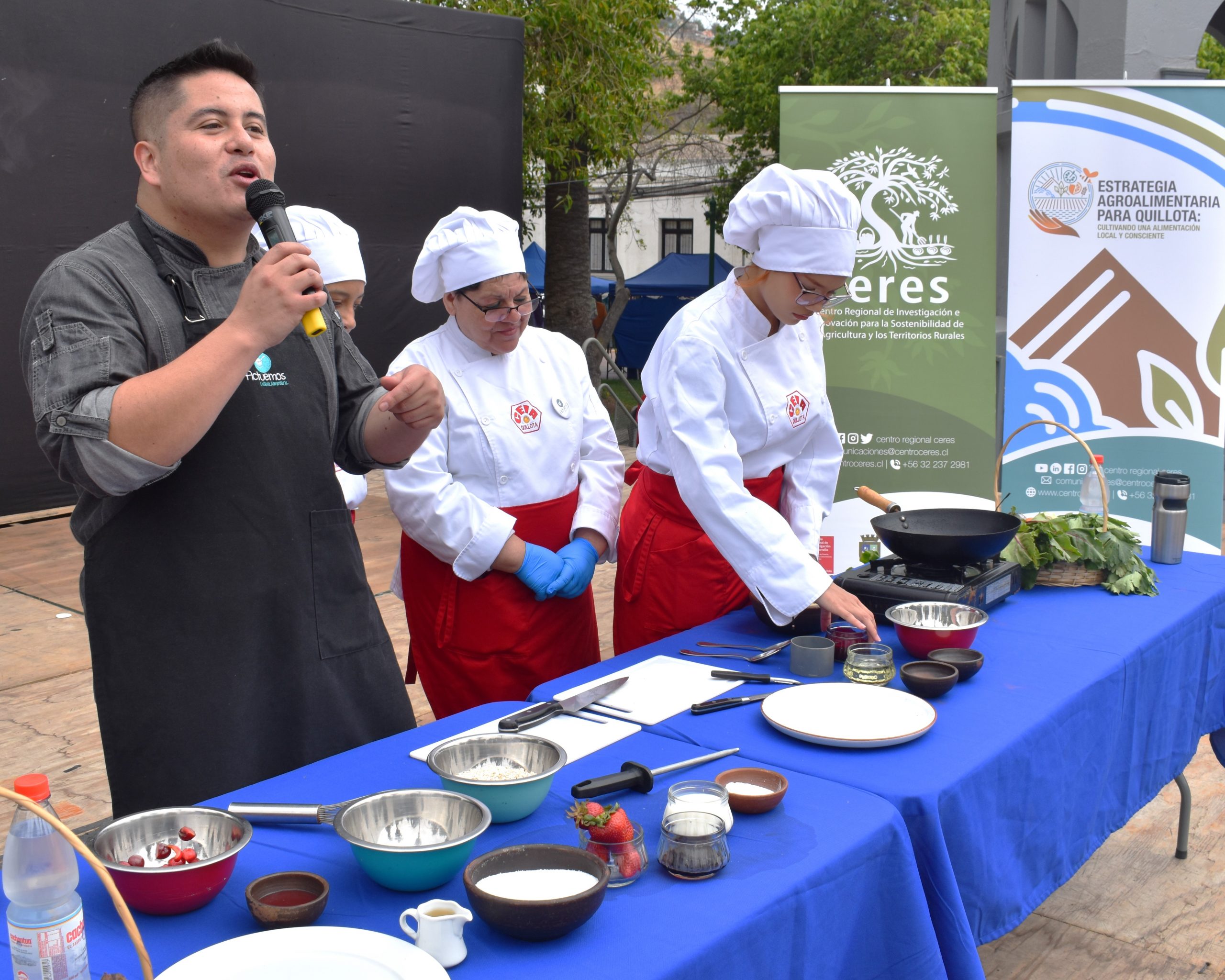 A cargo de Francisco Fernández Callucura, chef y miembro de Corporación Actuemos, estuvo el taller de cocina en vivo. Entre sus preparaciones, el cocinero propuso dos recetas que buscaron encantar el paladar de los vecinos de Quillota, mediante el uso de ingredientes que comúnmente se encuentran en sus despensas. La primera de ellas, fue un timbal de quinoa a la betarraga con vegetales salteados y, como postre, se sirvieron hotcakes de plátano maduro con un mix de frutas.
