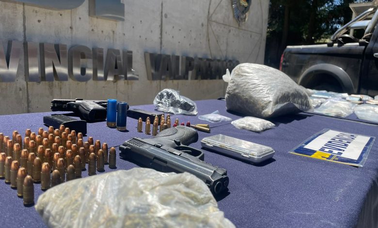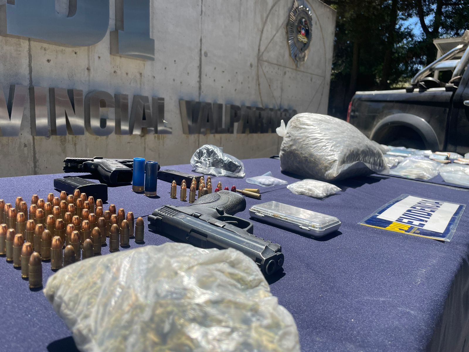 En el operativo además la PDI decomisó una pistola marca Taurus, una pistola Smith and Wesson, dos vehículos de propiedad del líder de la banda delictual, dinero en efectivo, munición de diverso calibre y elementos para la dosificación de sustancias.