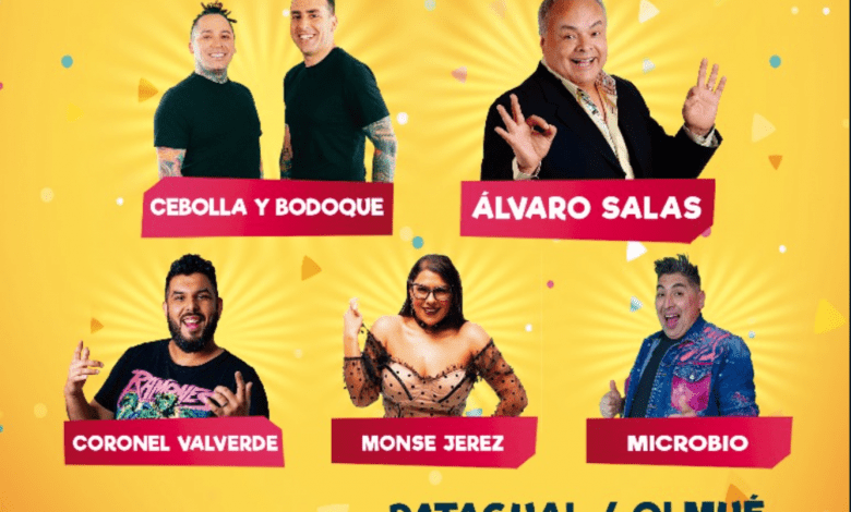 Álvaro Salas, Cebolla y Bodoque, coronel Valverde, Monse Jerez y Microbio liderarán la parrilla humorística del Festival del Humor, a realizarse el domingo 24 de marzo, a las 18:00 horas, en el anfiteatro del Patagual de Olmué.