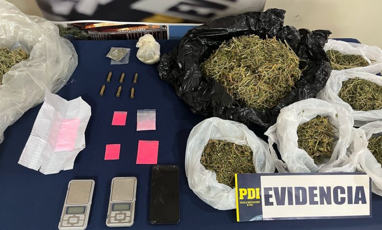 El trabajo de análisis criminal e inteligencia policial desplegado por los efectivos del grupo MT0, permitió conseguir una orden de entrada y registro para tres inmuebles ubicados en el sector de el Peumo Alto, desde donde fueron incautados cerca de mil gramos de cannabis sativa, 14 gramos de cocaína base, munición y elementos para la dosificación de sustancias ilícitas.