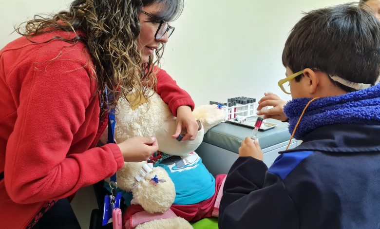 El recorrido por Cesfam Kids incluyó el pabellón de cirugía menor, farmacia con la entrega de dulces a modo de medicina, la unidad dental con atenciones que contaron con apoyo de la perrita de asistencia, toma de exámenes de sangre a un oso de peluche y trabajo sensorial.