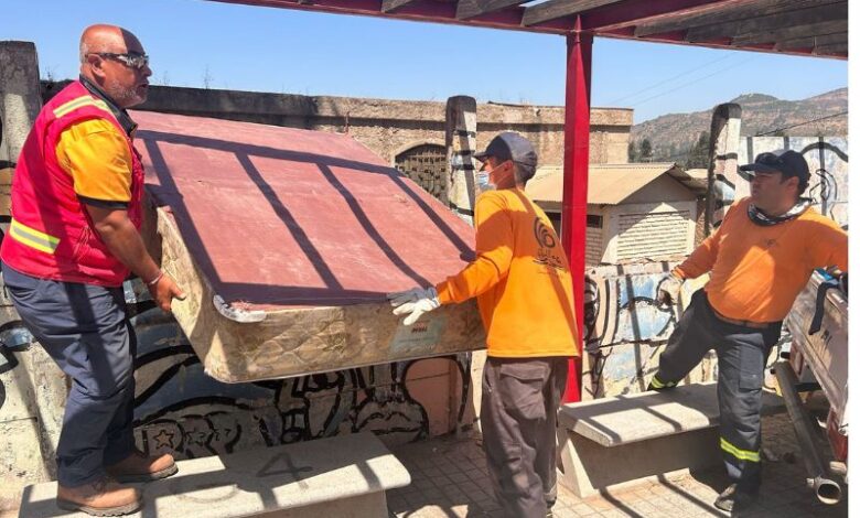 En el lugar se notificó con anterioridad a personas en situación de calle que pernoctaban en este recinto, se procedió a una limpieza de basura y residuos, en donde se constató resto de alcohol y drogas, materiales que fueron sacados en varios camiones.
