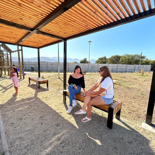 La renovada plaza de Villa Esperanza hoy cuenta con juegos infantiles, sombreadero, bancas, basureros y una reja de protección y contó con el trabajo de diferentes vecinos. “Las mujeres nos preocupamos de desmalezar el sector y de pintar el mobiliario, mientras que un vecino nos apoyó con la mano de obra”, cuenta Claudia, agregando que han recibido halagos de distintos sectores aledaños por la materialización de esta iniciativa.
