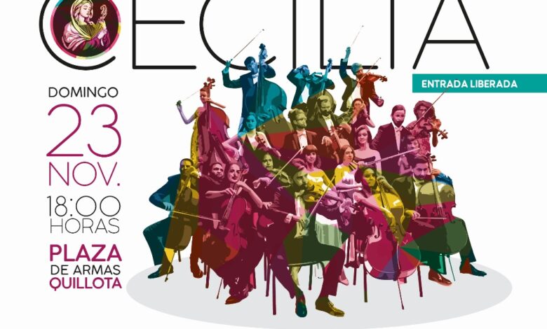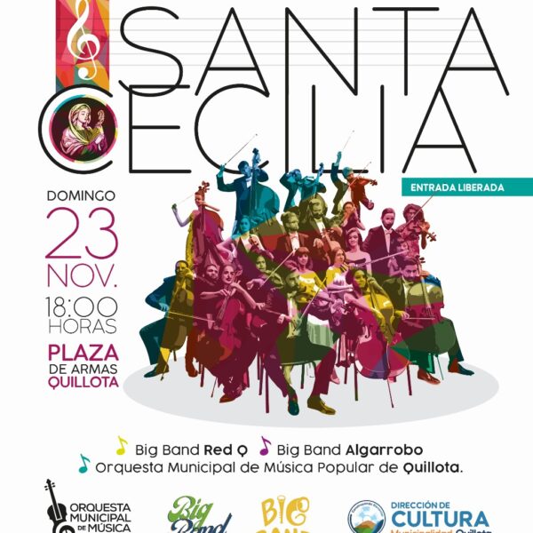 Cada 22 de noviembre se celebra a nivel mundial el Día de la Música en honor a Santa Cecilia, Patrona de la Música, en este marco, la Municipalidad de Quillota, a través de su Dirección de Cultura, tiene el agrado de invitar a la comunidad a un gran evento que se llevará a cabo el domingo 23 de noviembre a las 18:00 horas en la Plaza de Armas de Quillota.
