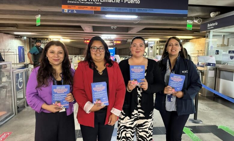 Hasta la Estación Viña del Mar llegaron las seremis de Justicia y Derechos Humanos, Paula Gutiérrez, la vocera regional, Carolina Zapata, la coordinadora del CAVD Valparaíso, Karin Silva, y la subgerente de Pasajeros EFE Valparaíso, Carolina Matus, para realizar un volanteo con el objetivo de informar a la comunidad sobre el nuevo Servicio de Acceso a la Justicia y Defensoría de las Víctimas, creado por la Ley N°21.780, publicada en el Diario Oficial el 13 de noviembre de 2025, y su implementación, bajo la campaña institucional “Chile te Defiende”.