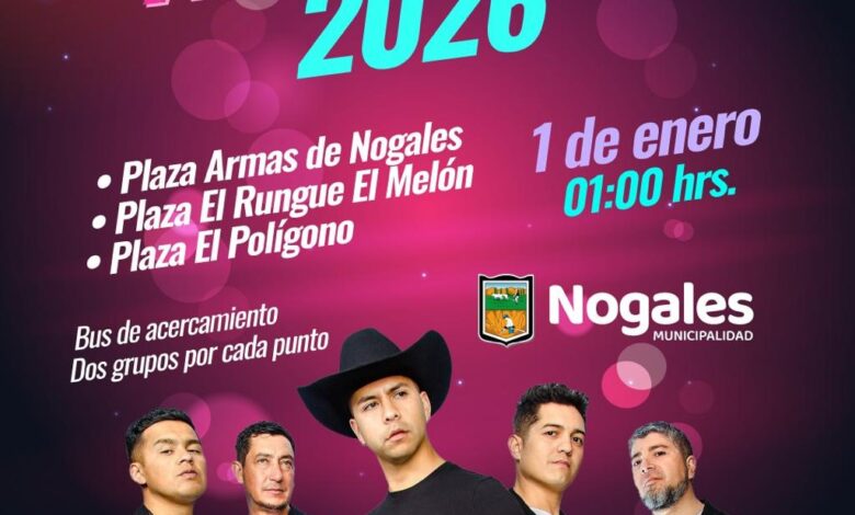 Con el propósito de celebrar la llegada del Año Nuevo junto a la comunidad, la Municipalidad de Nogales anunció la realización de tres bailes simultáneos este 1 de enero, a partir de las 01:00 horas, los que se desarrollarán en la Plaza de Nogales, Plaza El Rungue en El Melón y Plaza El Polígono, con música en vivo y transporte de acercamiento para facilitar la participación de vecinas y vecinos de toda la comuna.