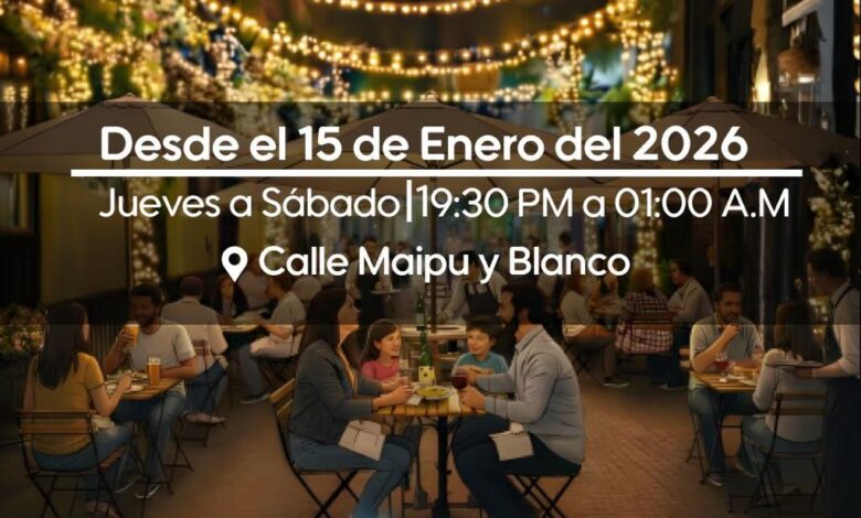 La instancia se realizará desde el 15 de enero en las afueras de los locales, pub y restaurantes que se ubican en las intersecciones de calle Blanco con Maipú, en un panorama que se vivirá de jueves a sábado del verano de 19:30 a 1:00 de la madrugada. La idea es que se aun polo de atracción para el turismo en durante la temporada.