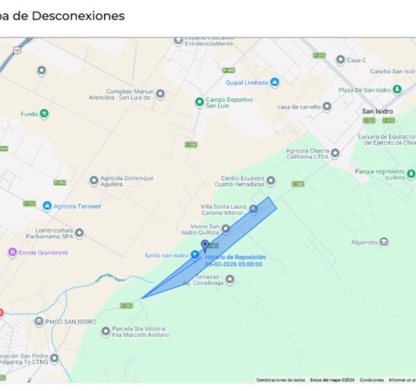 En Quillota, la interrupción del servicio se concentrará en el tramo comprendido entre los sectores de San Isidro y San Pedro, afectando principalmente zonas rurales y predios agrícolas. De acuerdo con la programación oficial, el corte se extenderá desde las 22:45 horas de este miércoles 4 de febrero hasta las 06:00 horas del jueves 5.