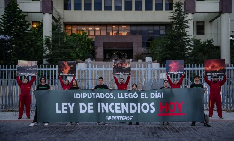 Al amanecer y frente al Congreso: Greenpeace exige a Diputados aprobar hoy la ley de incendios