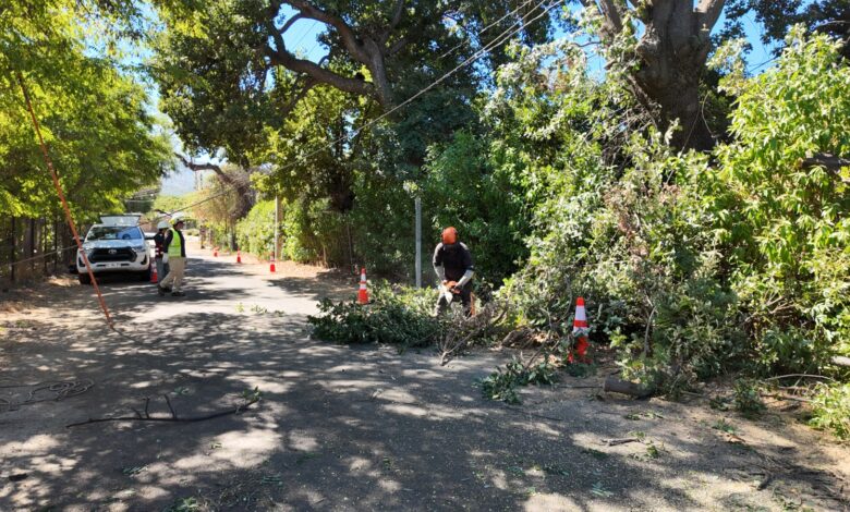 El operativo contempló la poda y tala preventiva de árboles de grandes dimensiones —principalmente en las inmediaciones de la Escuela de Hualcapo— con el objetivo de evitar la caída de ramas sobre el tendido eléctrico y prevenir riesgos para estudiantes, docentes y vecinos del sector.