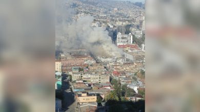 Gigantesco incendio en pleno centro de Valparaíso deja 4 locales comerciales quemados