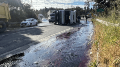 Camión con vino volcó y derramó su carga en Camino La Pólvora de Valparaíso